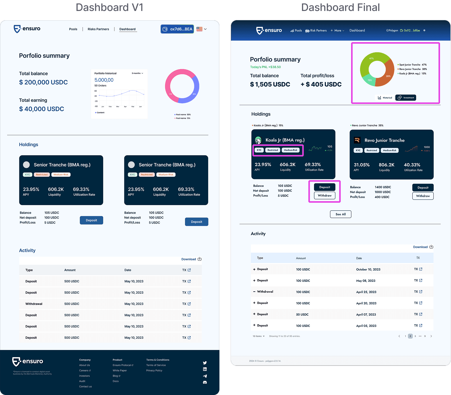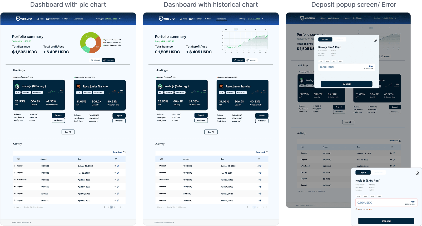 Analysis of DeFi investment platforms identified dashboard as a standard feature missing from Ensuro's offering.