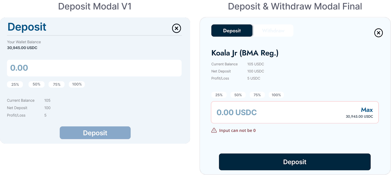 The original flow required investors to navigate back to the pool list each time they wanted to check balances or make deposits.
