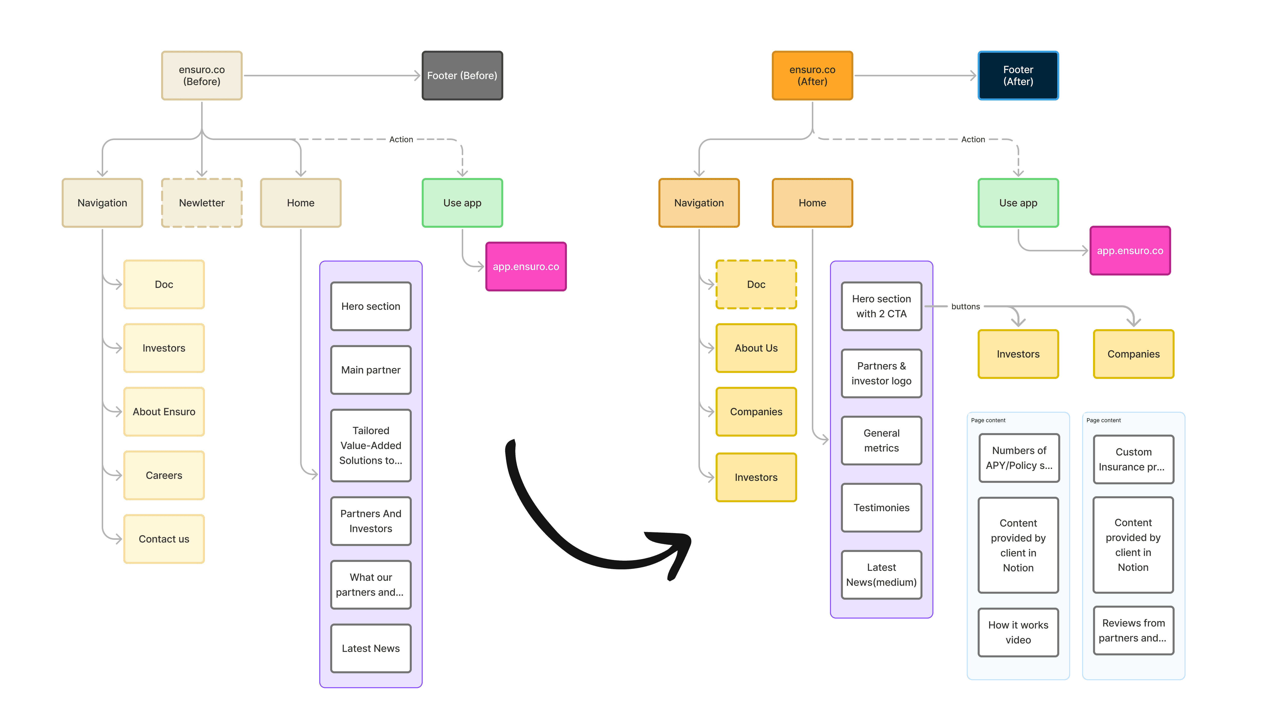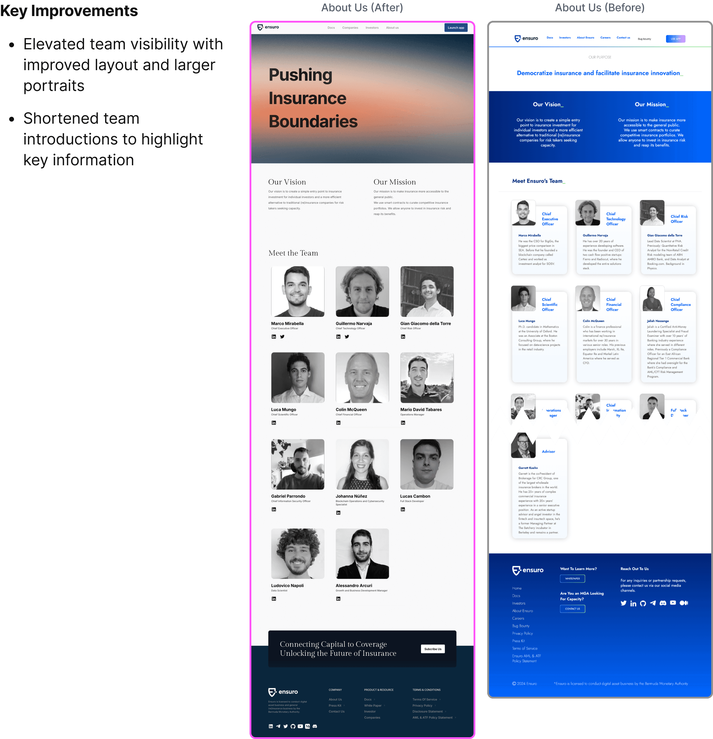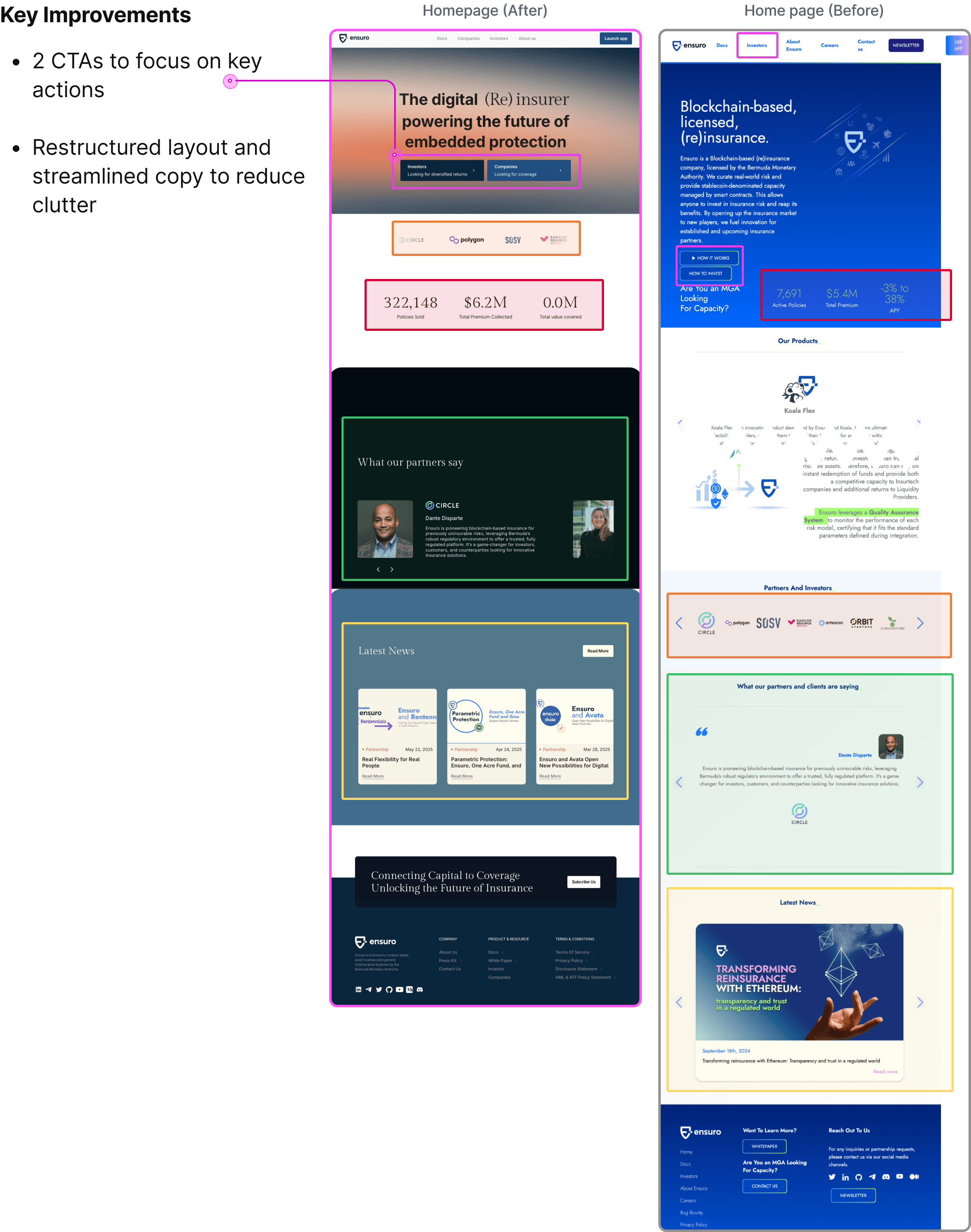 Lengthy copy and unclear navigation made it difficult for users to find what they needed and understand Ensuro's value.