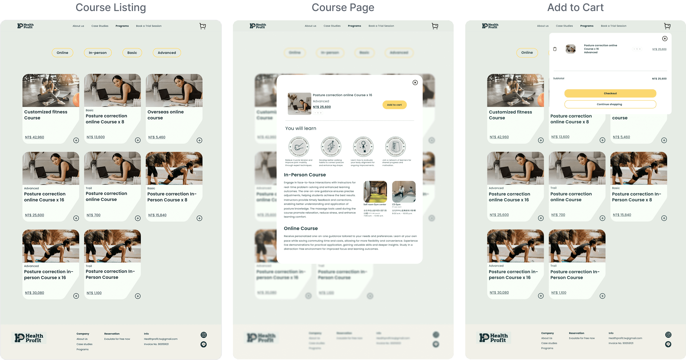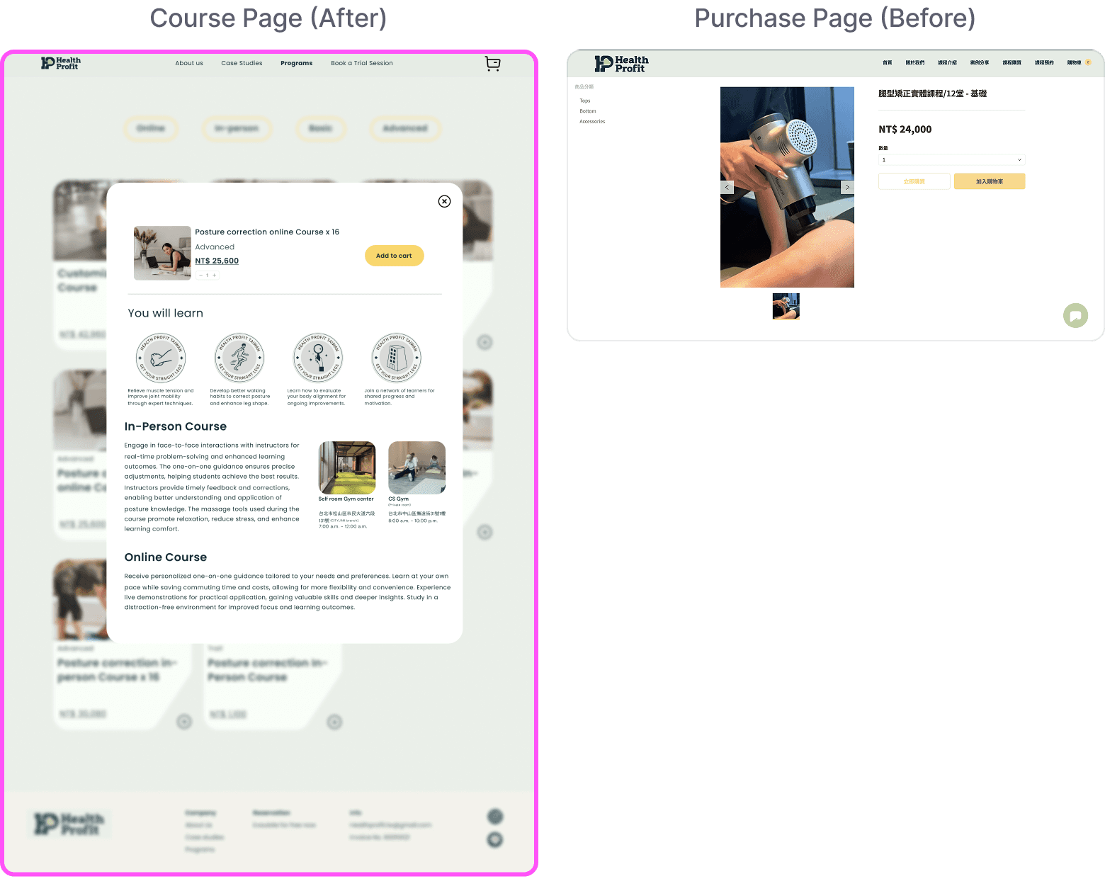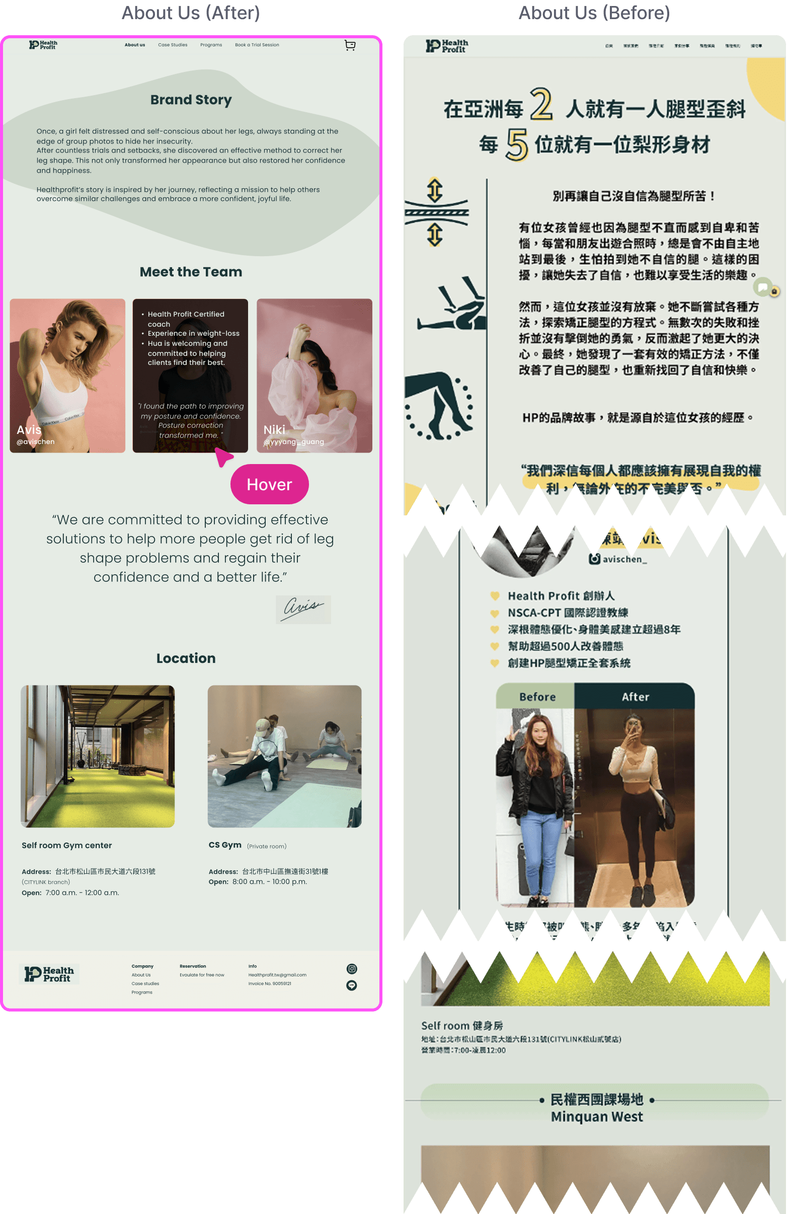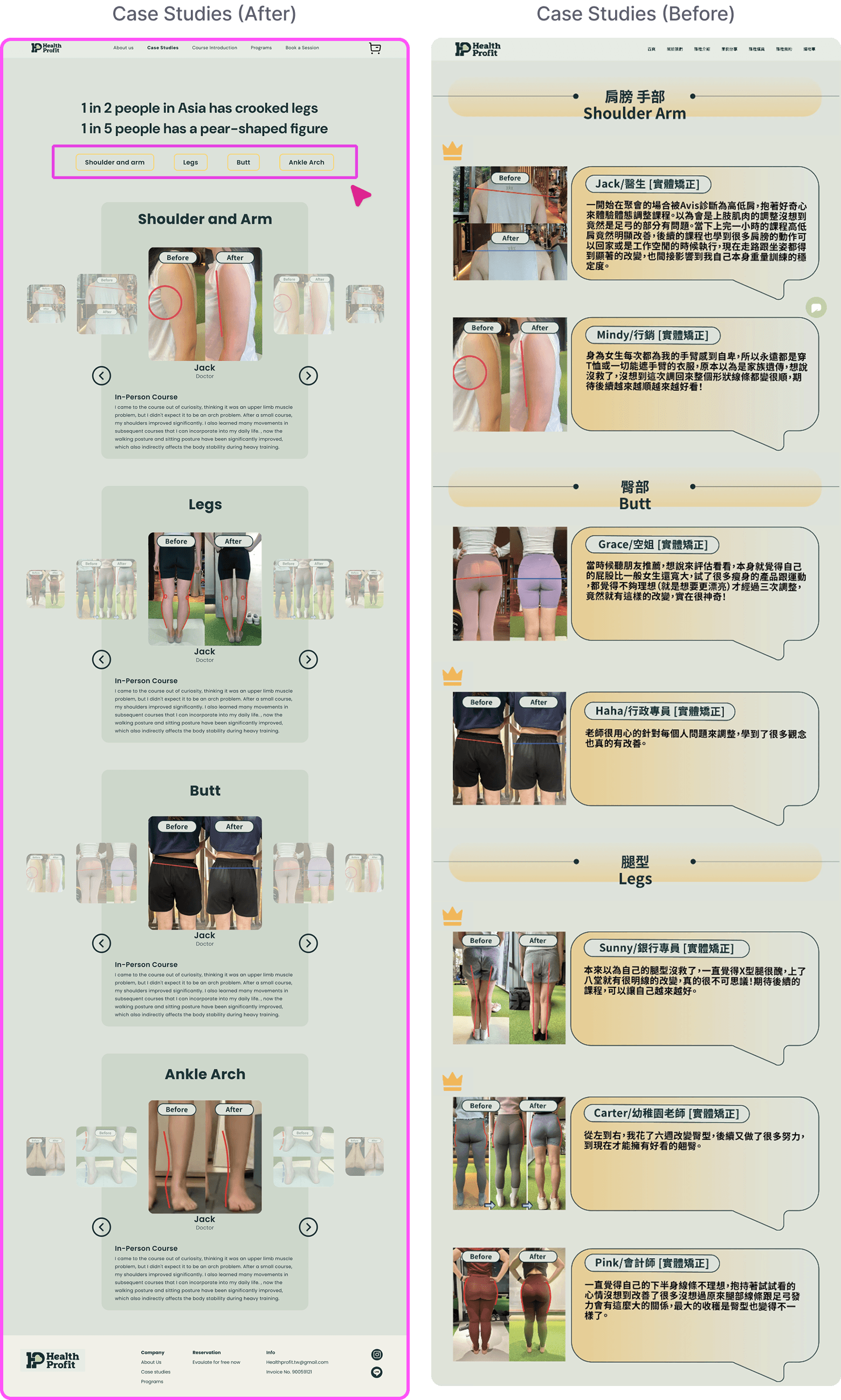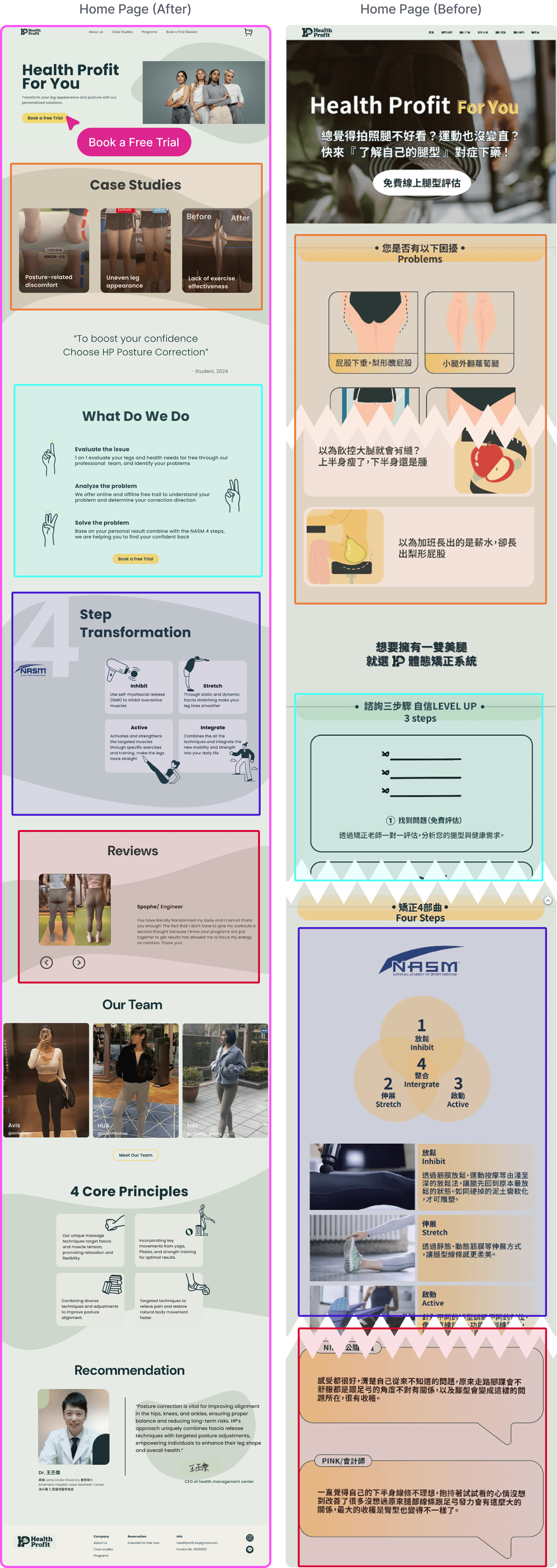 A Taiwan-based startup focused on posture correction and body alignment. The existing website had cluttered content, unclear navigation, and inconsistent layout across devices, making it difficult for new visitors to understand the service and convert.